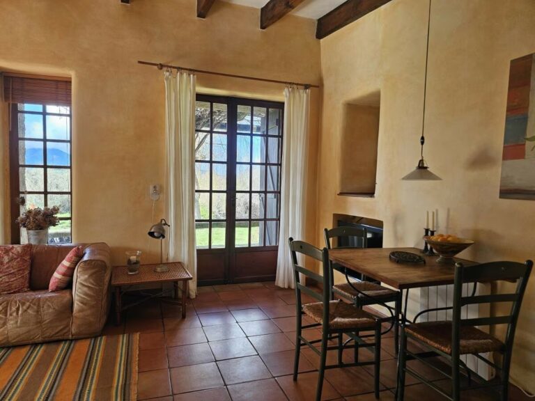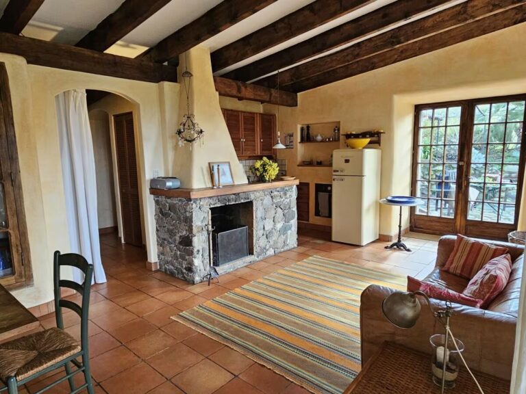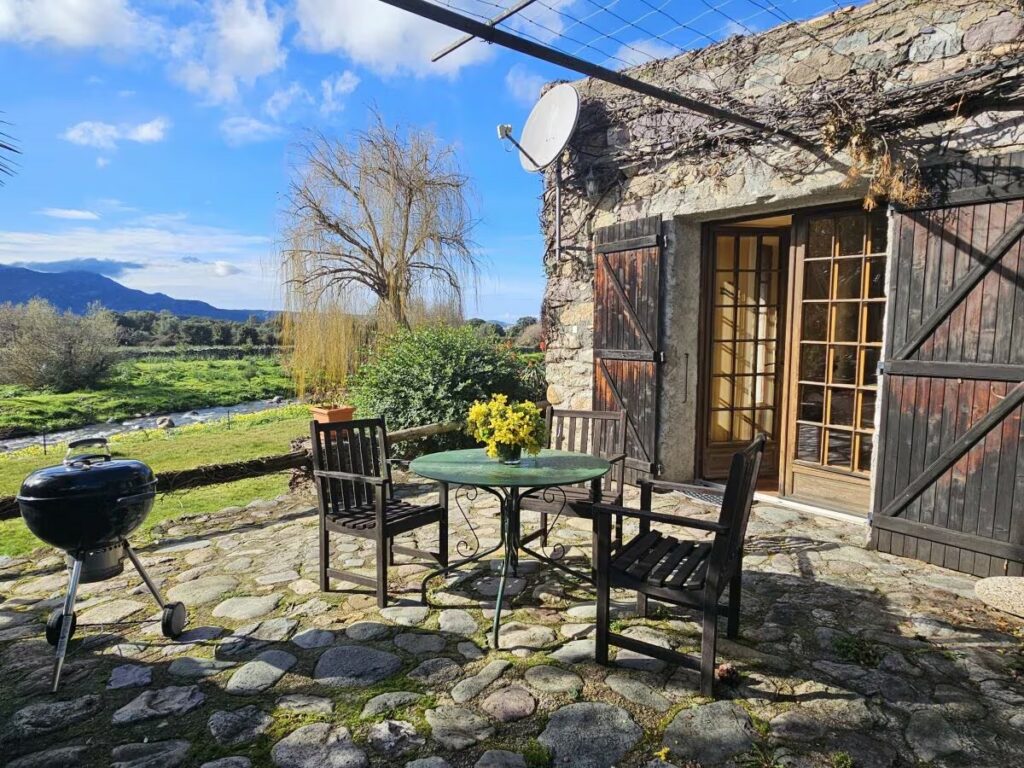 Cette charmante maison en pierre naturelle de 42 m², située directement au bord de la rivière, offre une vue imprenable sur les montagnes et la mer. Idéale pour deux personnes, elle dispose d’un séjour chaleureux avec un foyer en pierre rustique et d’une cuisine intégrée entièrement équipée avec lave-vaisselle.